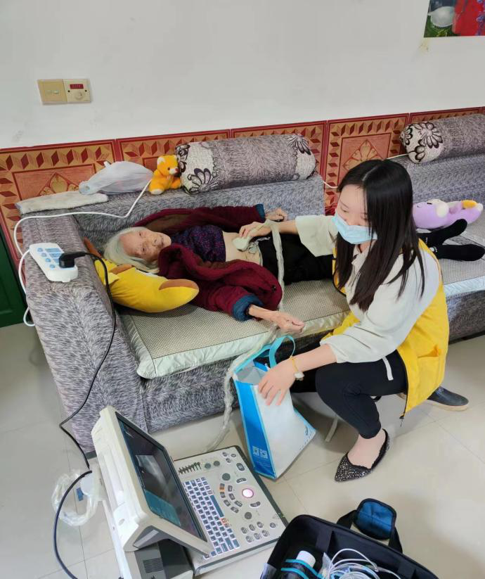 在家庭医生团队队长的带领下,医护人员熟练地为奶奶进行心电图、腹部B超、血尿常规等多项检查,还详细了解奶奶平时生活、饮食习惯,为其有针对性地开展健康促进工作,并为老人及其家人普及了安全用药等健康知识。