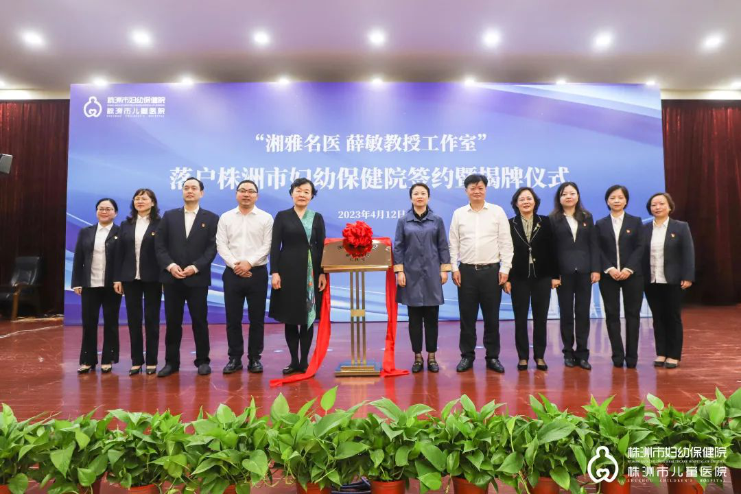 4月12日上午,湘雅名医薛敏教授工作室在株洲市妇幼保健院挂牌成立。株洲市卫生健康委党委书记、主任顾晓芳,株洲市卫生健康委党委委员、公立医院管理处处长龙国锋、中南大学湘雅三医院首席专家薛敏出席揭牌仪式。大会由株洲市妇幼保健院党委书记宋兵文主持。