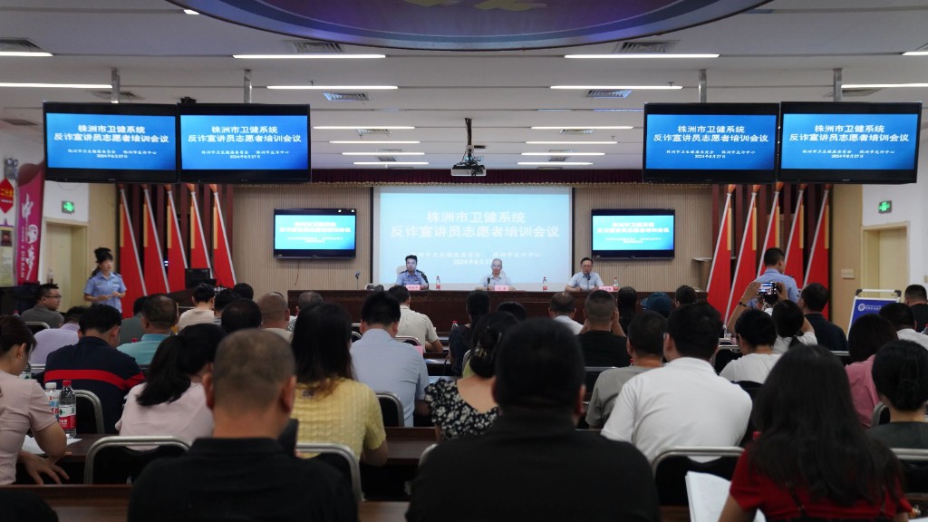 为全面提升系统反诈宣讲员志愿者队伍的专业素养和宣讲能力,使之有效引导系统干部职工提升防范意识,8月27日上午,市卫健委与市反诈中心联合举办了全市卫健系统反诈宣讲员志愿者培训会议。市卫健委三级调研员刘莹、市公安局刑事侦查支队政委田颖以及包括各市直医疗机构和委属单位的分管领导、责任科室负责人在内的91名反诈宣讲员志愿者参加会议。