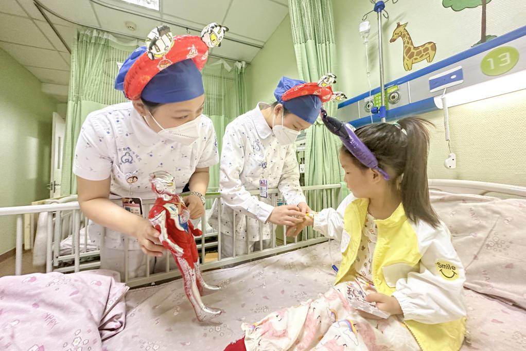 走进医院,儿童友好无处不在。儿童专用的迷你型洗手池和便池,诊区内的摇摇车、游乐园、绘本角,病房里各式各样的卡通图案,查房时孩子们收到的小贴纸……无数个充满童趣的小巧思自然地融入到医院每个角落。