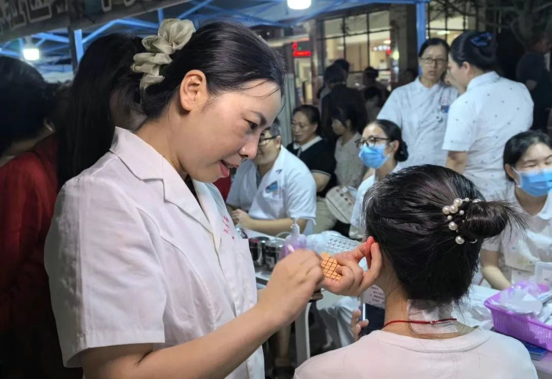 近日,炎陵县中医医院在门诊楼前坪开展以 “精彩中医药 健康惠万家” 为主题的 “百市千县” 中医药文化惠民活动。该院100余名医护人员化身“夜市摊主”,为百姓提供健康义诊服务,本次活动为期两天。