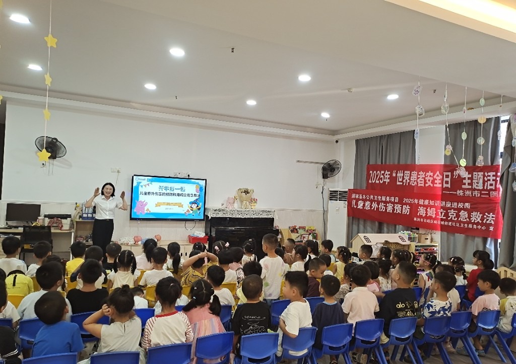 为全面提升幼儿园师生的安全防范意识与应急救护能力,切实保障在园儿童的生命安全和身体健康,9月16日上午,石峰区响石岭街道社区卫生服务中心充分发挥医联体协作优势,特邀紧密型医联体单位——株洲市二医院儿科专家罗叶副主任医师走进幼儿园,开展了以“开学第一课——儿童意外伤害预防与海姆立克急救法”为主题的专题讲座。