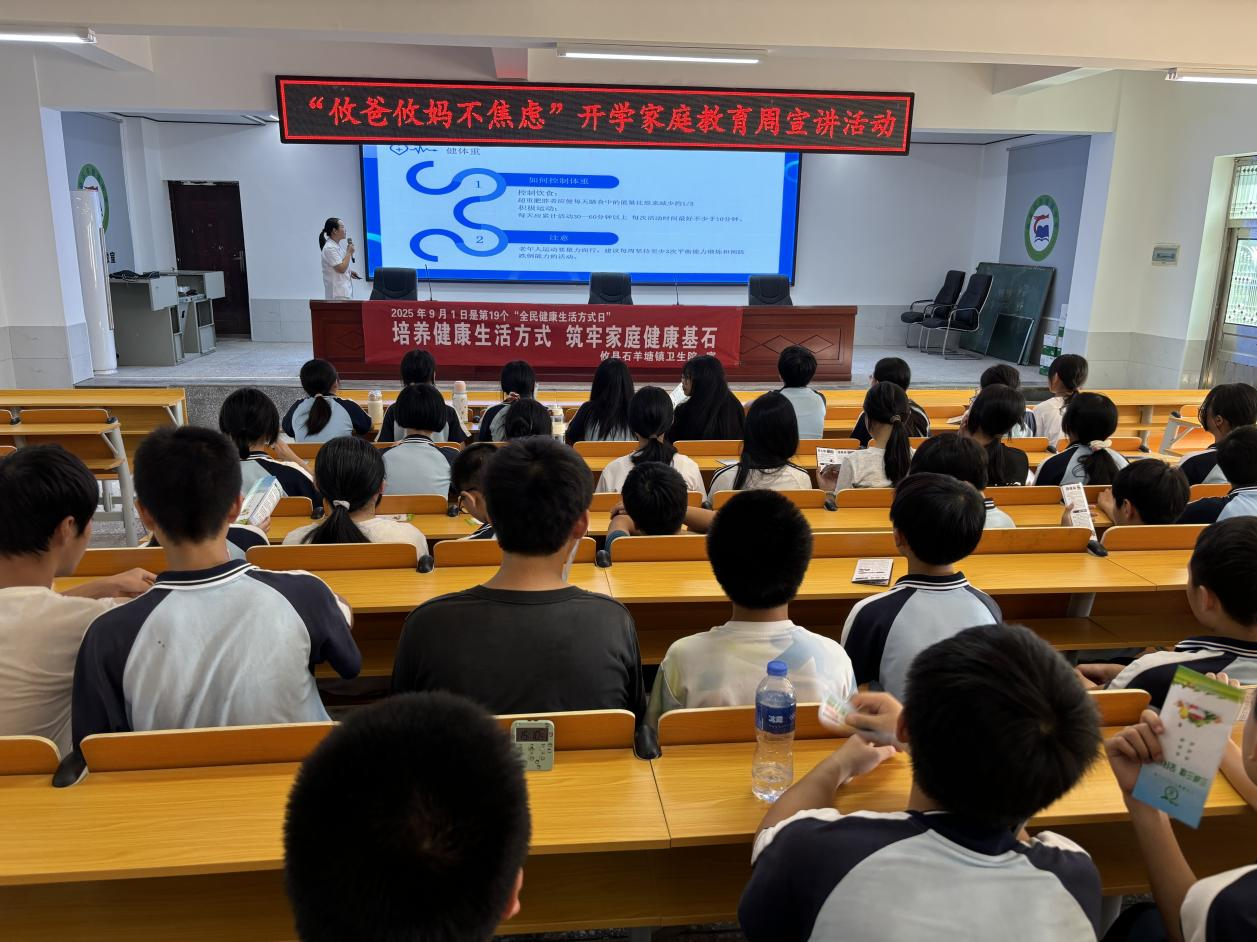 为普及健康生活理念,提升青少年健康意识与自我保健能力,近日,石羊塘镇卫生院医护团队走进石羊塘镇中学,举办“三减三健”主题健康知识讲座。