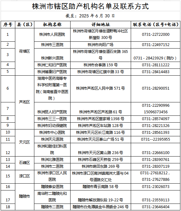 为维护妇女儿童健康,切实保障母婴安全,现将我市经批准开展助产技术服务的医疗机构信息予以公布,接受社会监督,方便群众就医。名单公示如下: