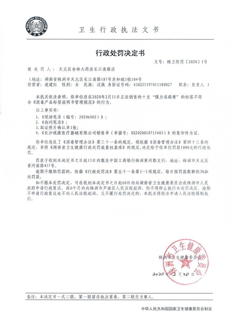 株卫传罚〔2020〕1号