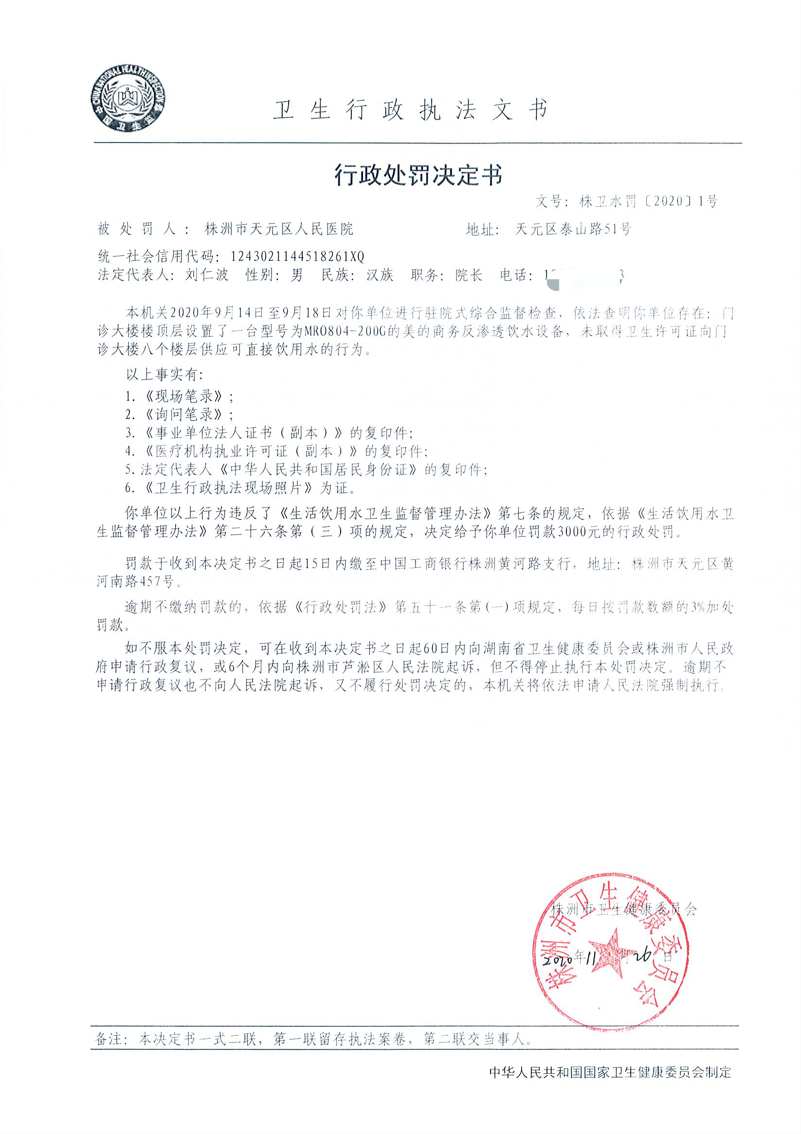 株卫水罚〔2020〕1号