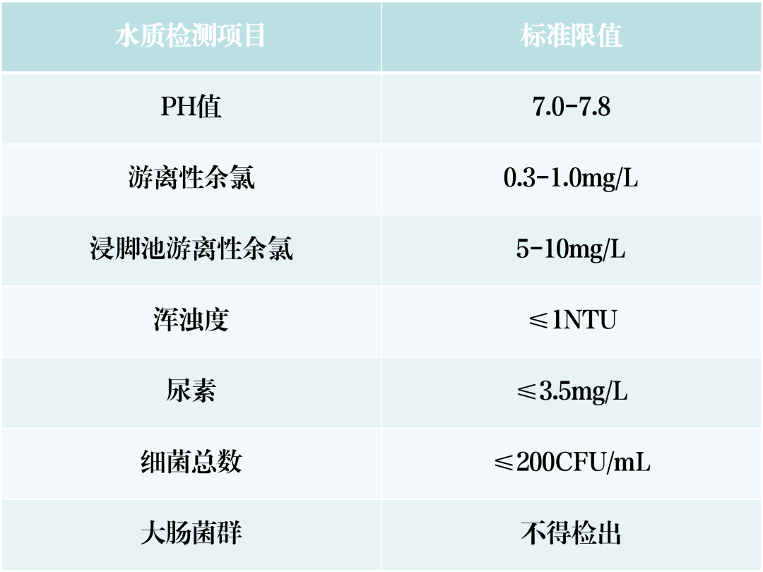 本次重点监督检查的项目有:游泳场馆证照、从业人员健康证明持有情况;顾客用品用具清洗消毒制度落实情况;卫生设施设备运转及维护情况;水质自检及结果公示情况;水处理药品药剂采购索证及存放等情况。水质检测指标,pH值,浑浊度,尿素,游离性余氯,细菌总数,大肠菌群等。