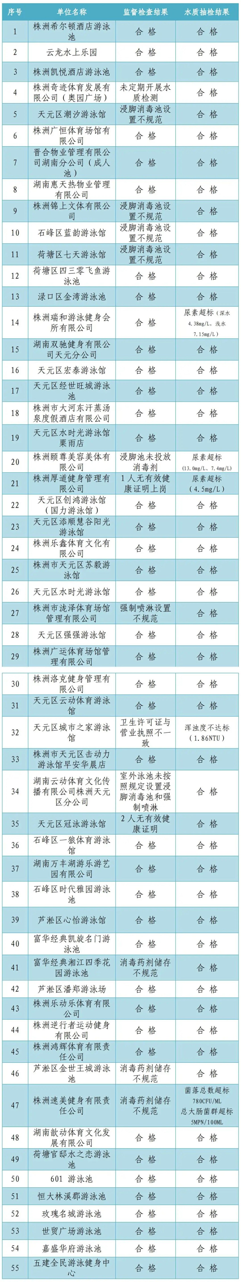 附件:2023年株洲市游泳场馆卫生监督抽检首批结果公示