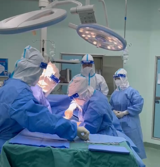 但小李没有符合手术要求的核酸检测报告,时间就是生命,按相关应急机制,妇科通报相关情况给医务科、院感科及公卫科后,麻醉科手术室立刻启动应急方案,开通急诊手术绿色通道。在医院的负压手术间里,麻醉科、手术室、妇科团队成员密切配合,按照此前的应急演练一样有条不紊,严格按照各项疫情防控要求,做好了全部术前准备。小李从专用通道被推入手术室,身穿隔离衣、防护服、头戴防护面罩的医护人员开始为她手术,行剖腹探查,术中见盆腹腔大量积血,约2000毫升,出血原因为右侧输卵管峡部妊娠破裂。 “穿防护服在不开空调的手术室里做手术,最大的感觉是闷,到后面有点缺氧。”肖文红主任说,“大家克服不适、争分夺秒顺利完成了手术。” 经过紧张的抢救,小李终于转危为安,目前生命体征平稳,病情稳定。