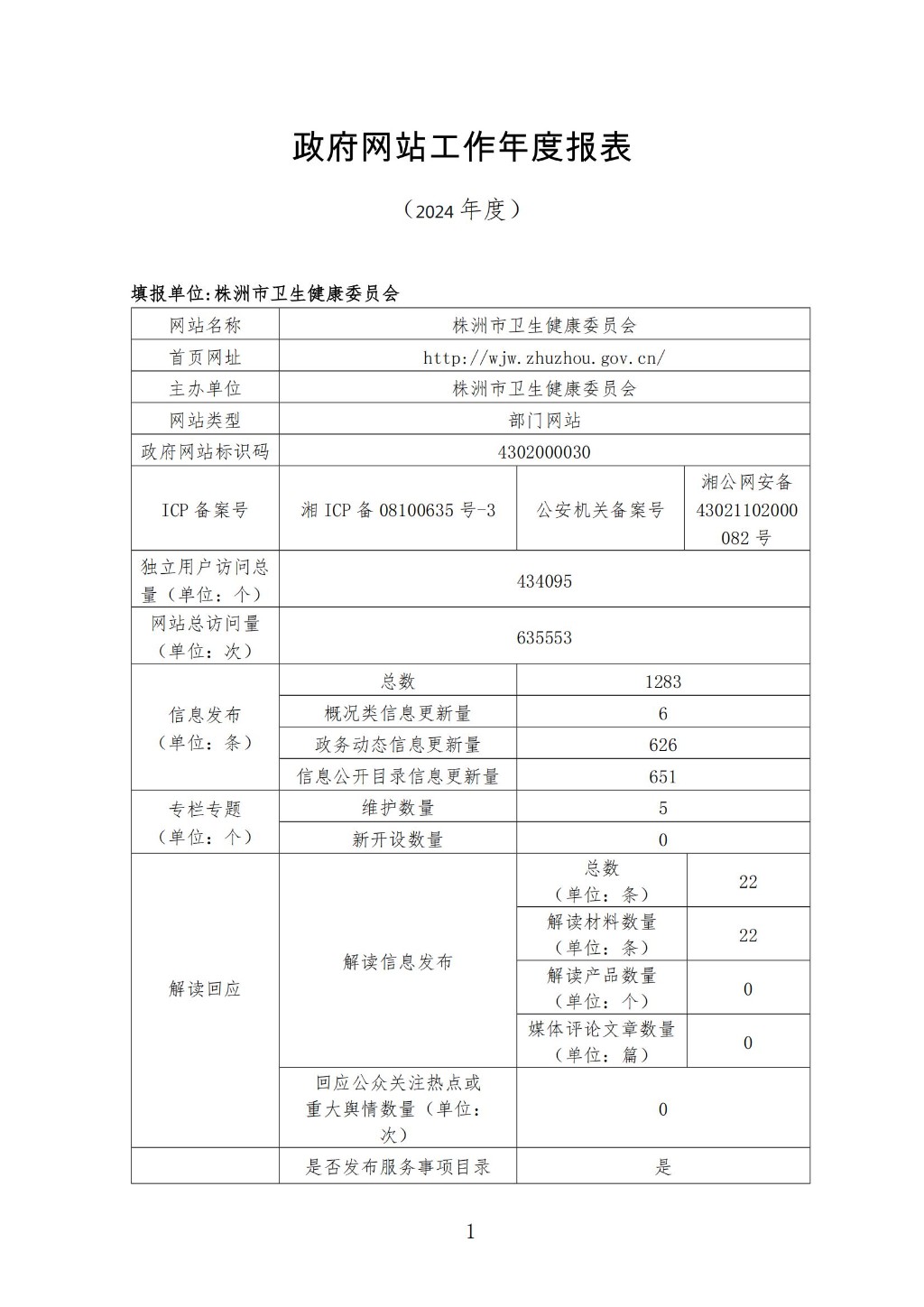 株洲市卫生健康委员会2024年度政府网站工作年度报表